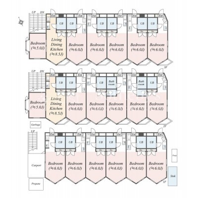 1億4,300万円築1年|2階建|全3戸横浜市都筑区すみれが丘◆1棟アパート◆全戸メゾネット×3LDK◆□北山田駅まで徒歩18分の立地□2階建て戸建のような仕様の3LDKの間取りが全3戸□バス・トイレ別□システムキッチン付きのリビングルーム□東向きバルコニー□宅配ボックス付き□バス便でセンター北アクセス可能□全戸に駐車場付き【現在賃貸中、想定利回り4.88%、満室時想定年間賃料6,984,000円(月々582,000円)】